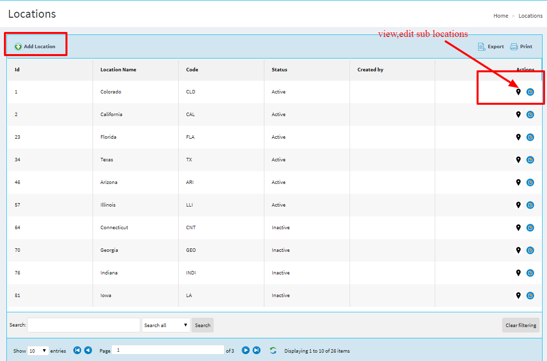 Administrator adds the loactions and list all loactions.