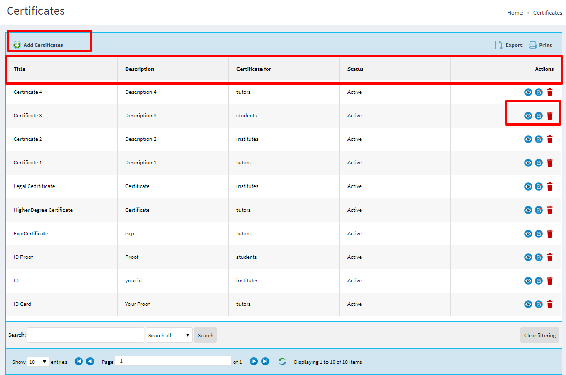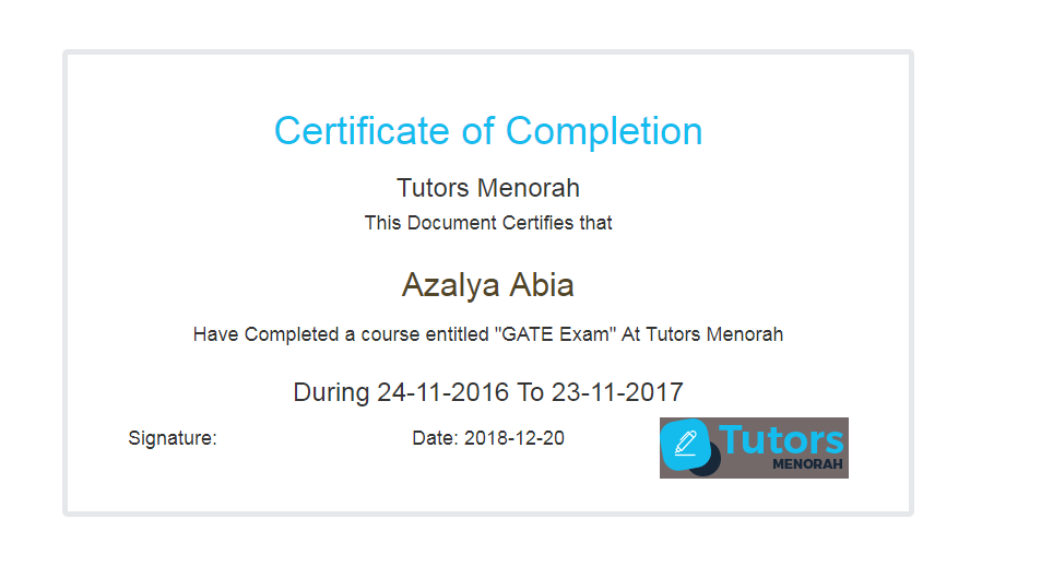 Tutor provide certificate to student