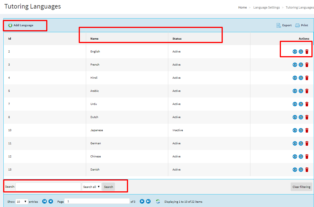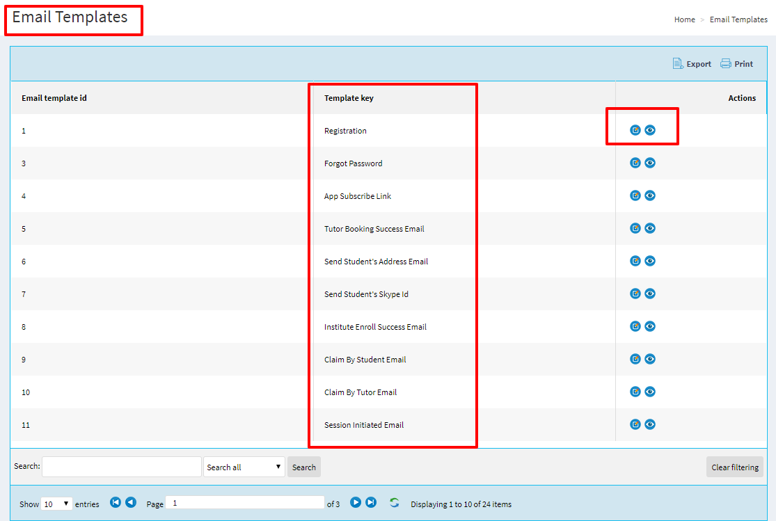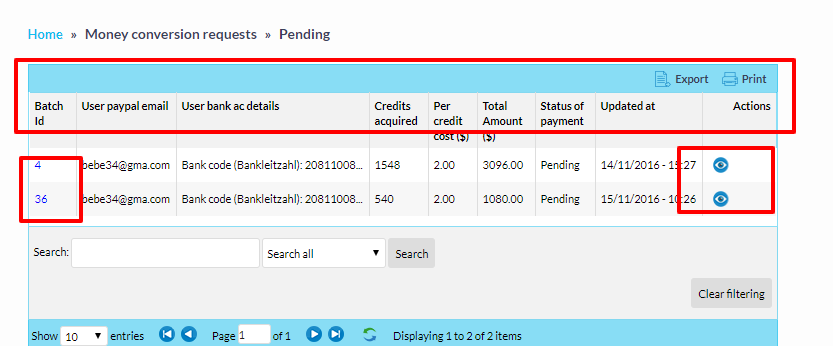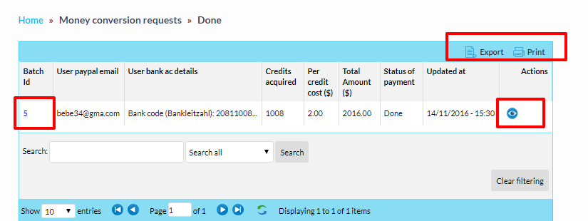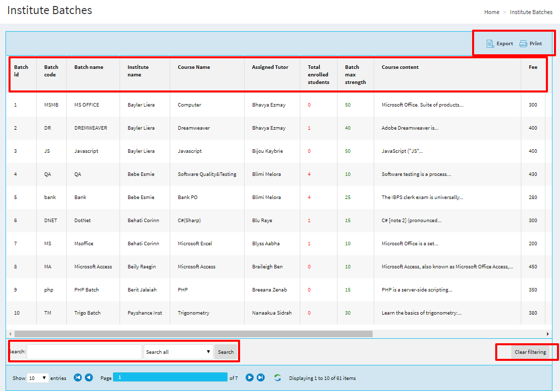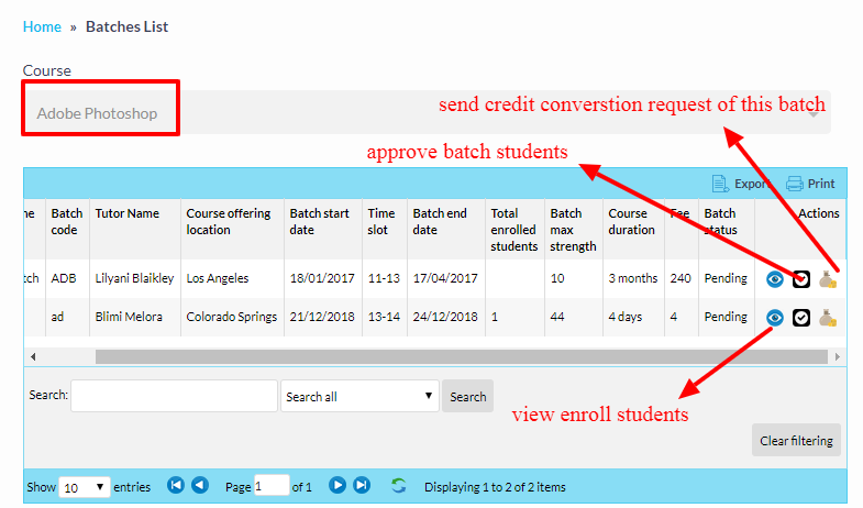 Administrtator can find the entire list of institute batches and he can modify the contents in the list.Administrtator is liable to take actions on specific batches.he can filter through specific id's.