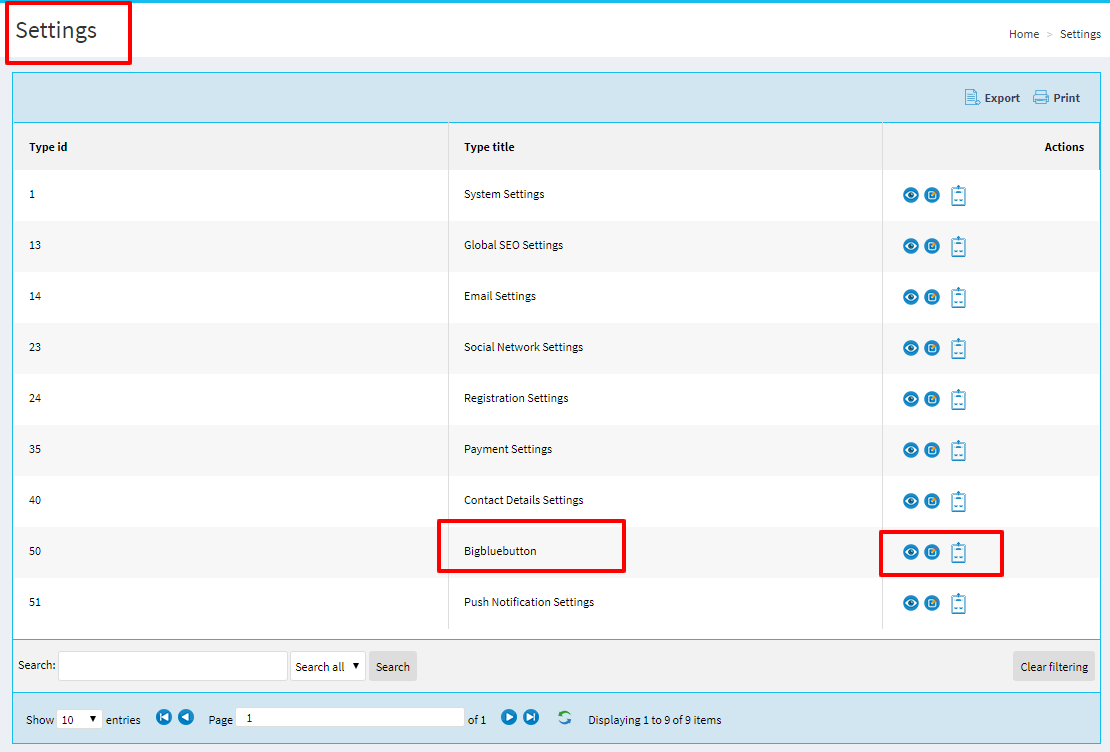 Bigbluebutton settings