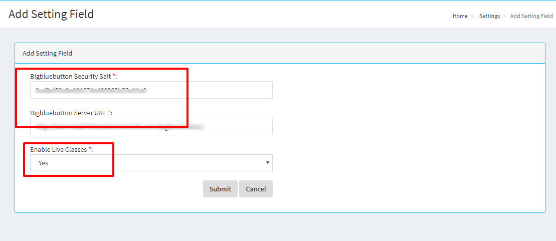 Admin has to set BBB Server details in Settings.