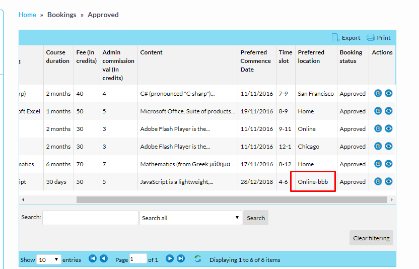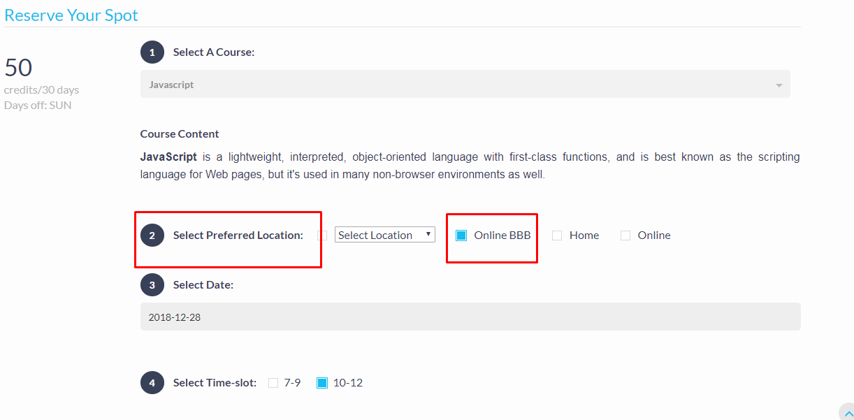 When student make a booking , If he select preferred location is "online BBB" then those are virtual classes (run through BBB).