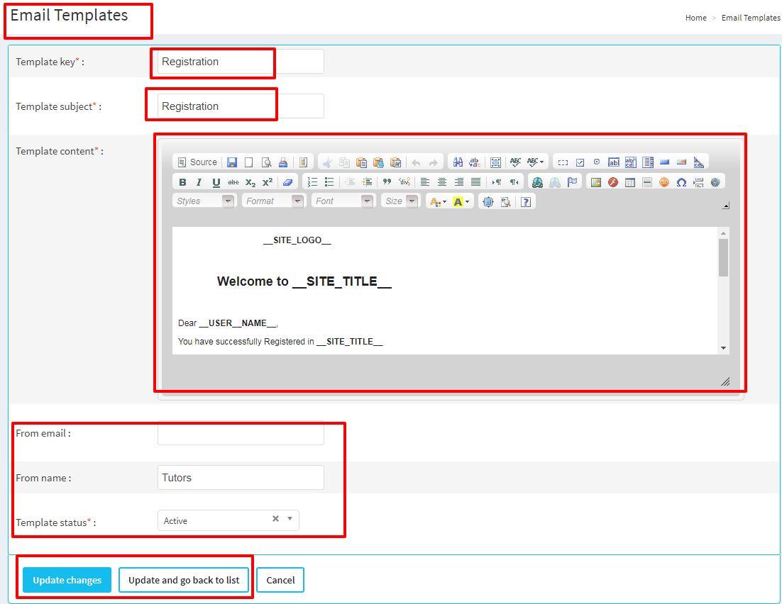 Admin can add dynamic content in email templates.