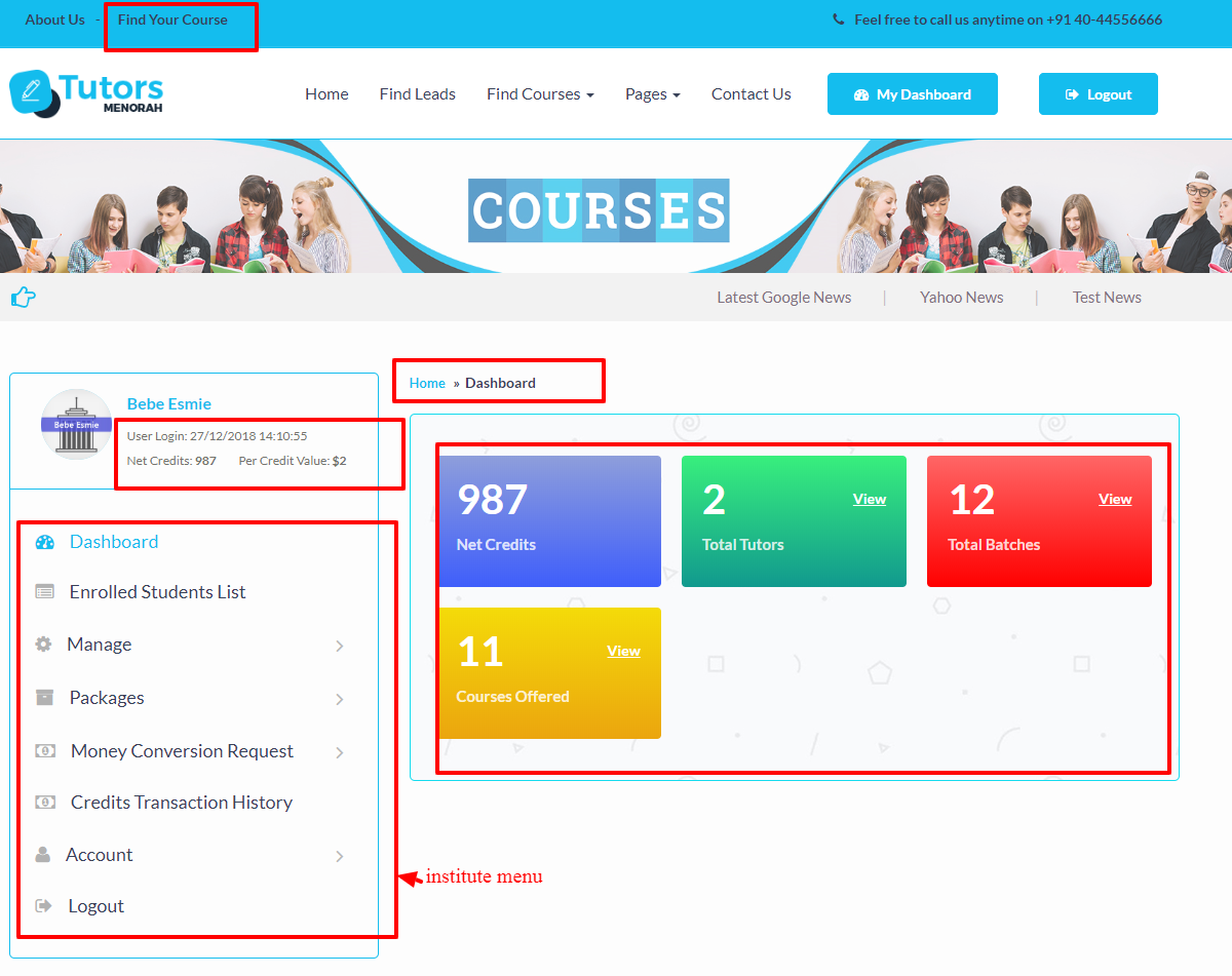 Tutors Menorah totally Run by Credit System.Tutors System Facilitates to Book a Course for students by Online using credits.Tutors can contact students by their requirements using credits.Institutes can register its tutors using credits.Its is useful to Students, Tutors and Institutes.
