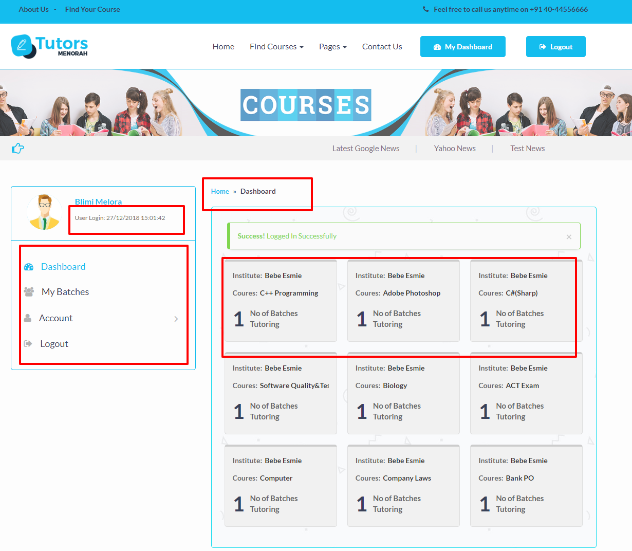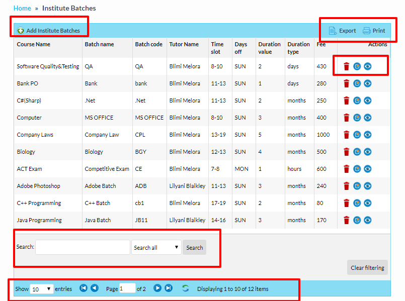 2. Institutes can create multiple Batches for students.