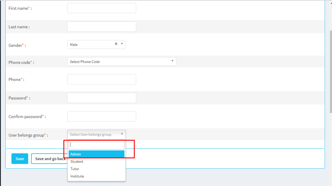 New Student, Tutor, Institute Registration.