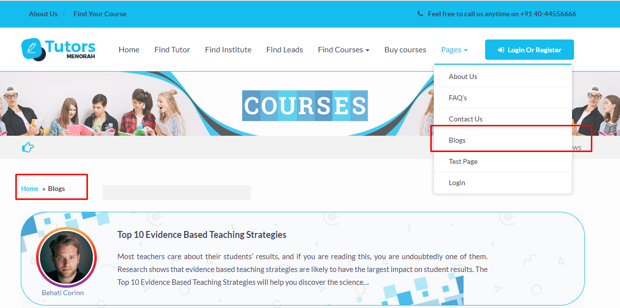 Tutor approved blogs are reflects in front end .