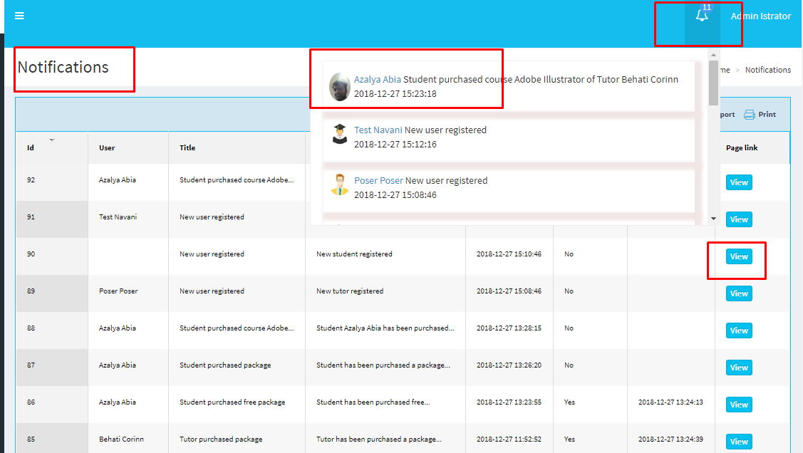 Admin get notifications