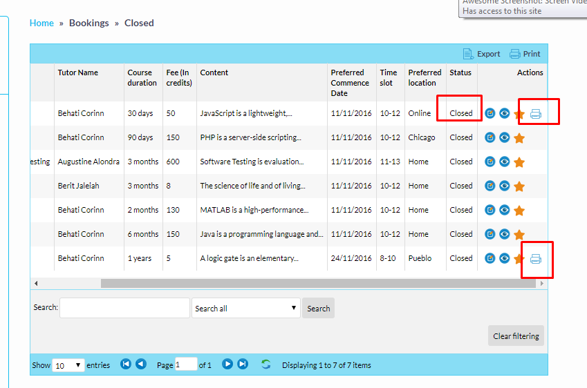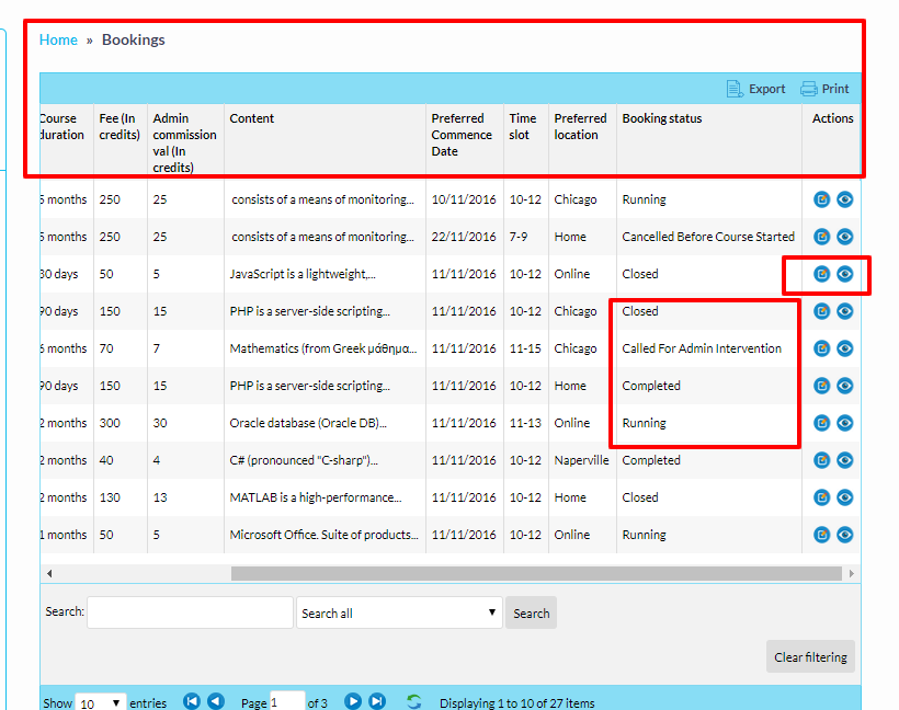 Administrtator can view all Students Bookings and he is liable to Modify their detials without ny information.Admin can also easily collect the entire list through two different ways by Exporting into Excel and by taking Print or download to pdf file.