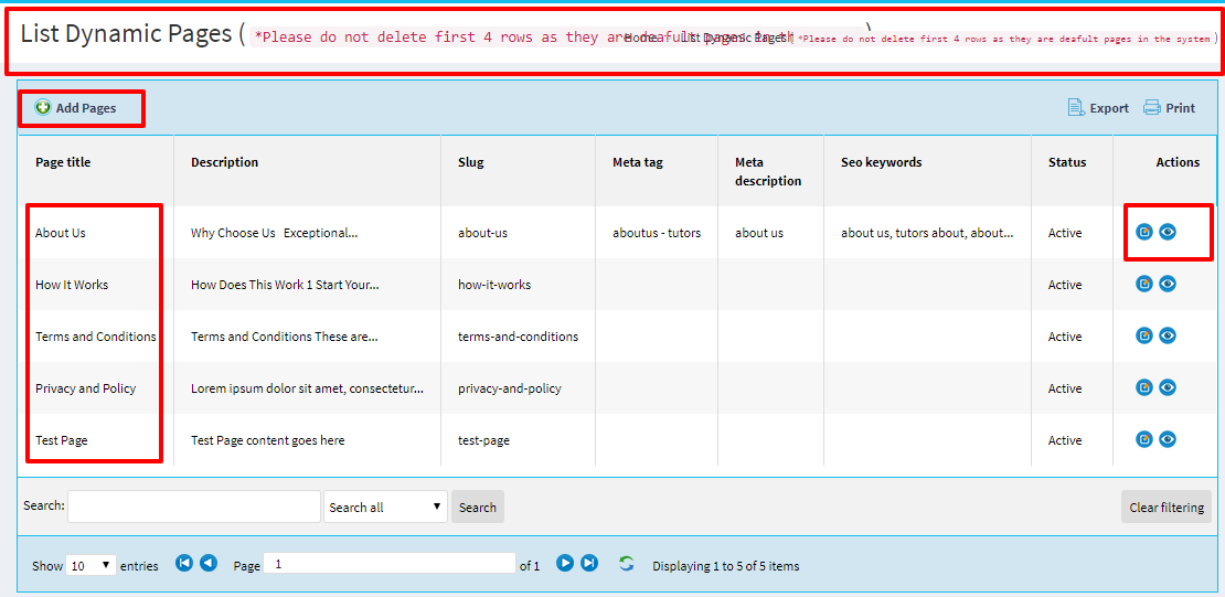 Admin can create number of dynamic pages, which reflects in front end.