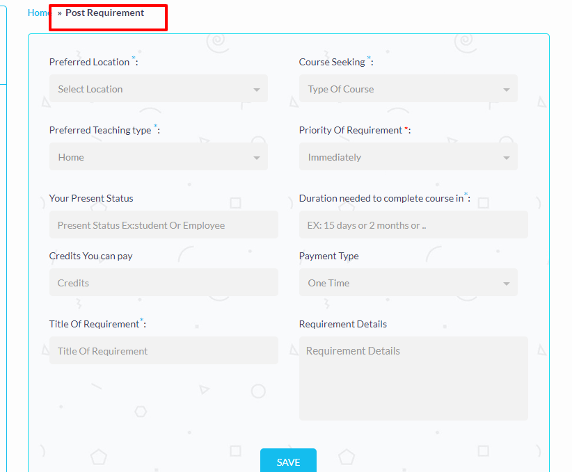 3. Student can post his requirements, if he not get required tutor in the list.