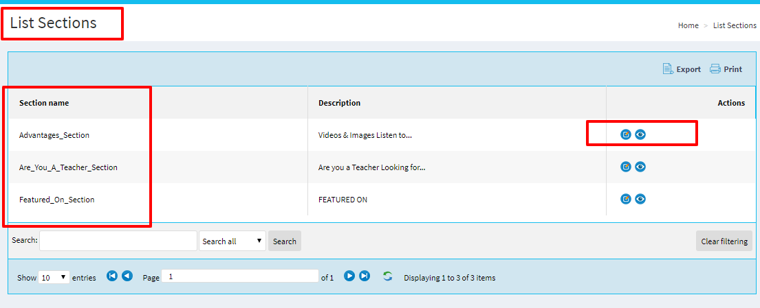 7. Same in left navigation, click on "Sections" > "List Sections"