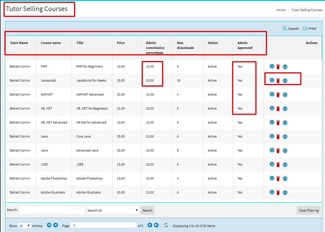 Admin can view all selling courses of Tutors, and can approve/disapprove.