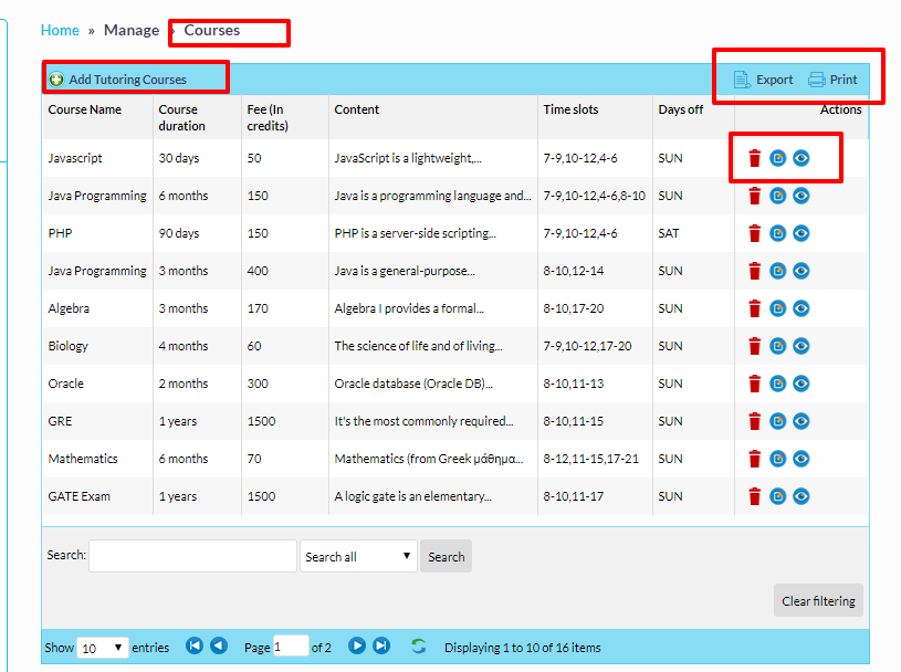 Tutor Courses